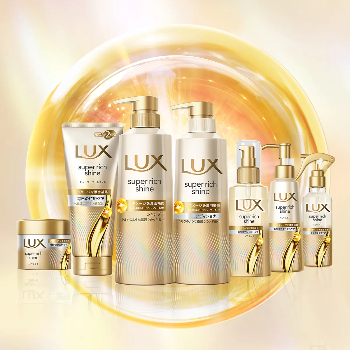 35年間の研究を経て進化を遂げてきたラックス。手ぐしが変わる新体験。シルク・アルガンオイル*1配合。80%が美容液*2の処方で、毛先のダメージも集中補修。