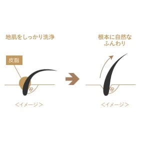 髪にうるおいを与えながら、根元のつぶれる原因となりやすい地肌の皮脂をしっかり洗浄し、根元に自然なふんわり感を与えます。