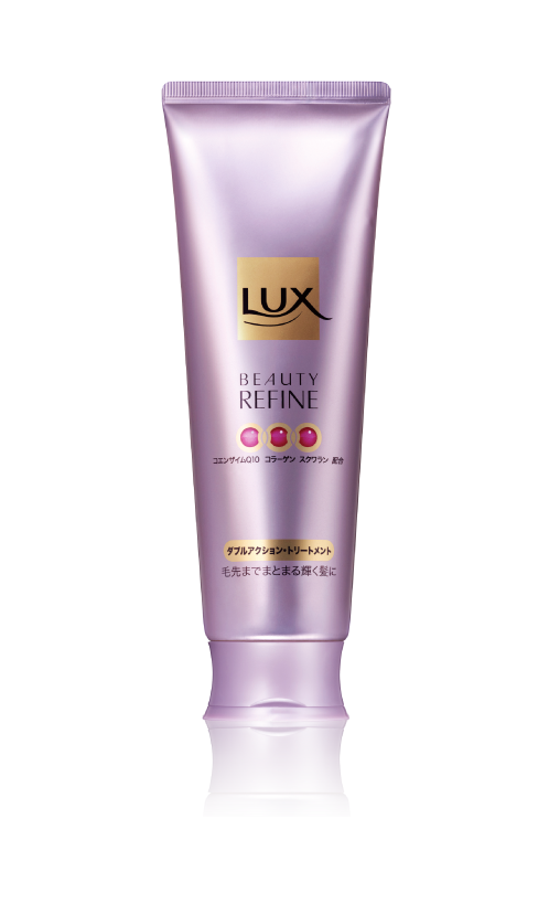 ラックス ビューティーリファインシリーズには、スキンケアに使われる成分である、コエンザイムQ10*1(保湿成分:ユビキノン)、コラーゲン(保湿成分)、スクワラン(毛髪保護成分)を贅沢に配合。毛先までまとまる輝く髪へ。