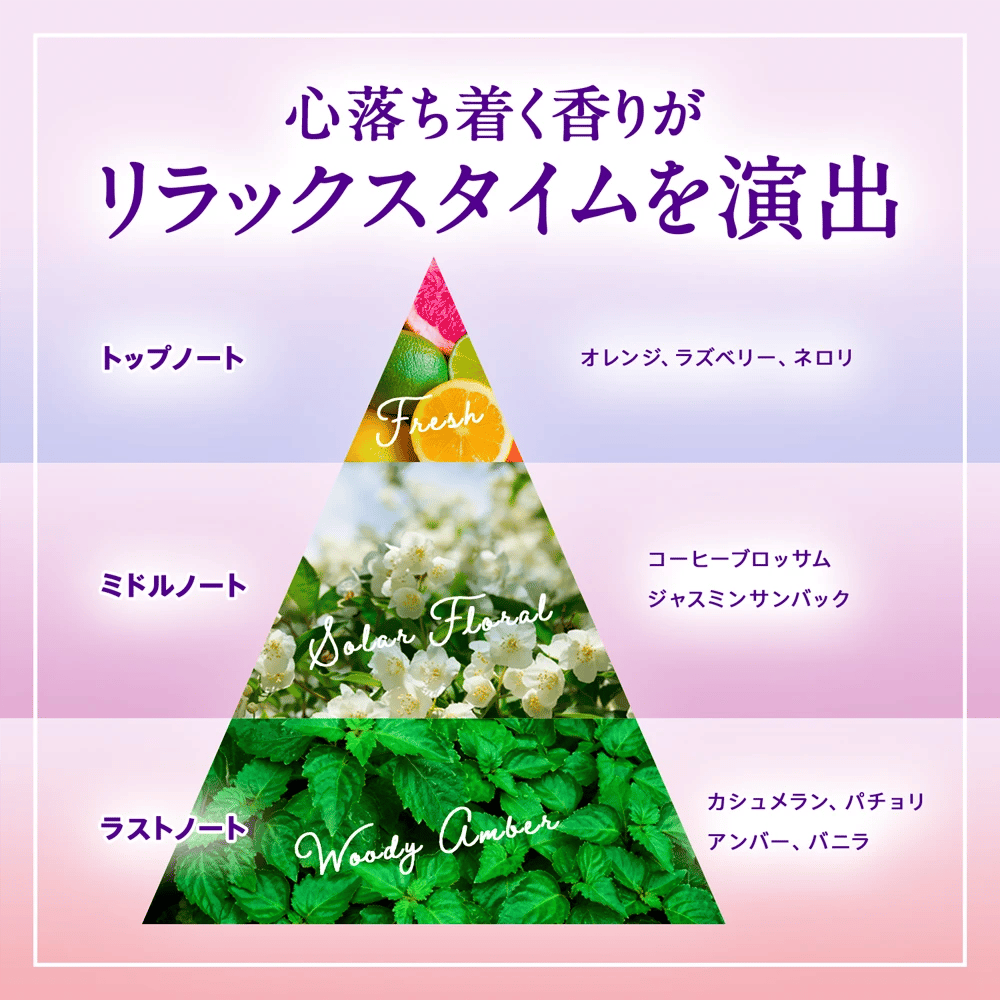 天然パチョリエッセンシャルオイル配合。約50日間*大切なお家時間を癒しの香りで包み込む