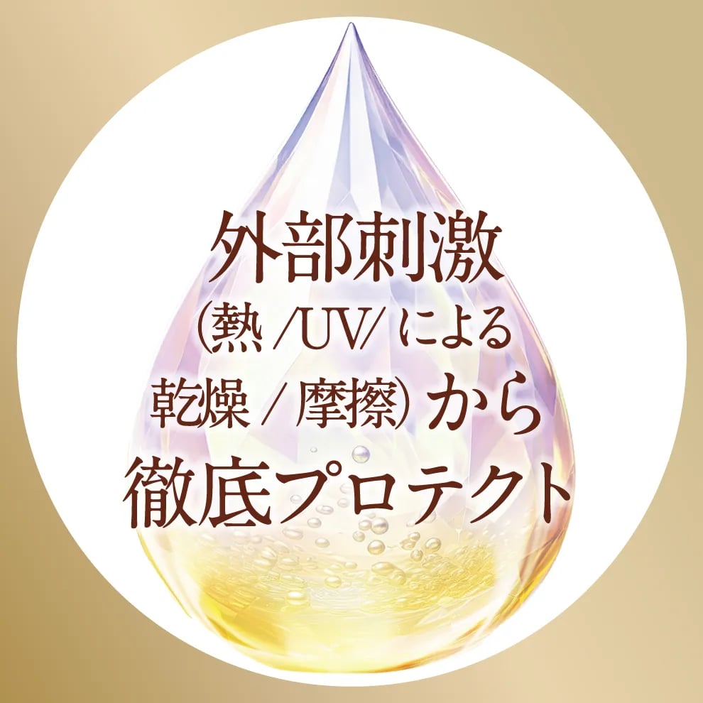 クリスタルアルガンオイル*4 配合。外部刺激(熱/UVによる乾燥/摩擦)から髪を守る成分。芯からツヤめく髪へ導く。