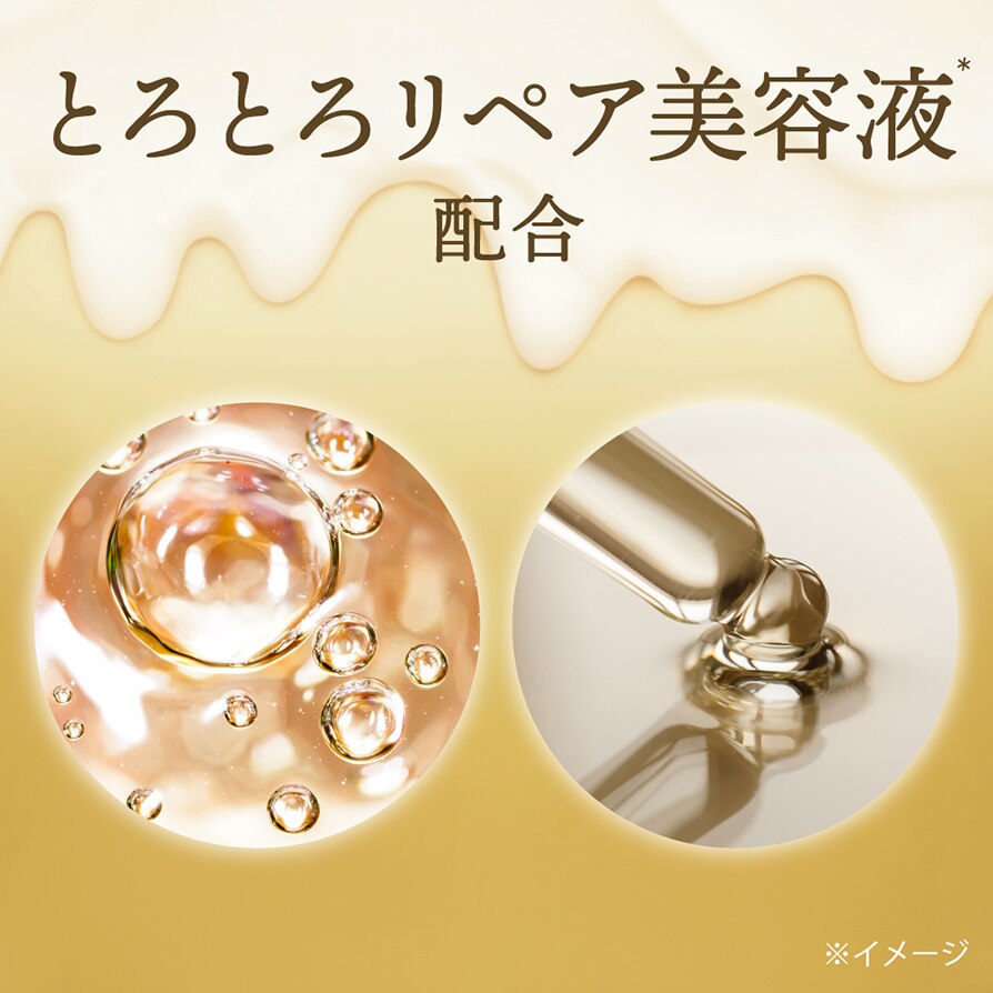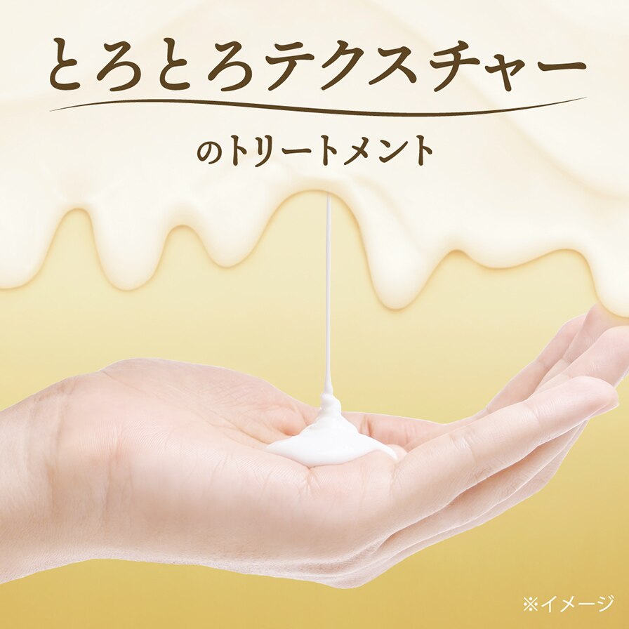 とろとろリペア美容液*1成分配合。とろとろテクスチャーが髪に均一に広がり、トリートメントが高密着・高浸透。バスタイムに、見て、触れて、実感できる今までと違うとろとろトリートメント。ダメージ、パサつき、うねりの悩みに、様々な剤形で応えるシリーズ。